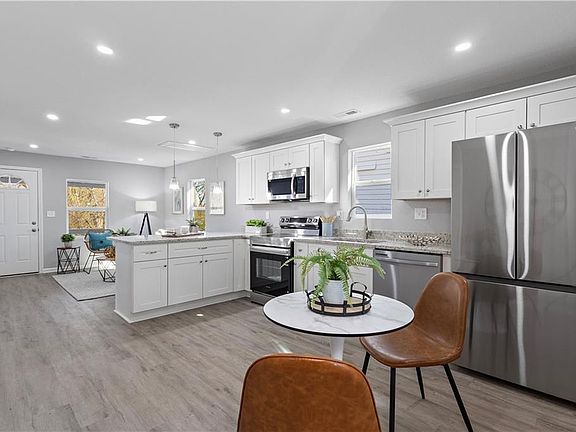 Welcome to this beautifully renovated two-bedroom, one-bathroom home. It is an excellent example of modern living, featuring high-end finishes, an open-concept living space with luxury vinyl plank flooring, and a gorgeous kitchen with stainless steel appliances and custom cabinetry. It's a must-see!