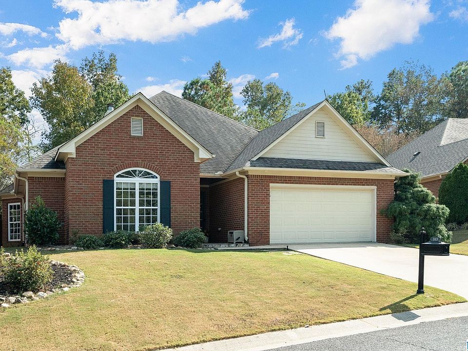 Welcome to 313 Narrows Parkway, a move-in ready 3 bedroom, 2 bath home in the sought-after Narrows subdivision featuring Oak Mountain schools. This one-level, 4-sides brick home offers a split bedroom floorplan, hardwood flooring in the main living areas and primary suite, and new carpet (2024) in the secondary bedrooms. Fresh interior paint brightens the space, while the kitchen features granite countertops, pantry, breakfast area, and a gas range. A spacious flex room offers options for dining or an office. The primary suite includes dual vanities, large soaking tub, tiled shower, and walk-in closet. The backyard is beautifully landscaped with a fenced yard, covered patio, and flower beds—perfect for relaxing or entertaining. Community amenities include a pool, playground, green space, and BBQ area. Sellers recently purchased a new refrigerator, washer, and dryer—all to remain. AN ASSUMABLE FHA LOAN AT 3.25% makes this an incredible opportunity close to shopping, hospitals, and more.