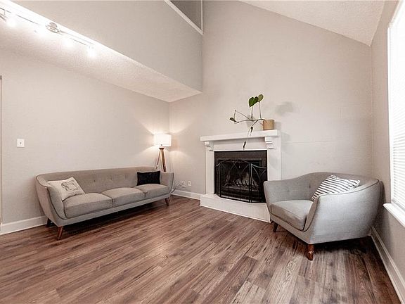 shopping. With its warm curb appeal and character-filled design, this home offers both comfort and flexibility. Inside, you’ll find stylish hard-surface flooring throughout the main level, enhancing the bright and open feel of the living space. The spacious living room features soaring ceilings, fresh neutral paint, and a charming wood-burning fireplace, creating the perfect setting to relax or entertain. The main floor also offers a convenient bedroom and laundry space, while two additional bedrooms and a full bathroom are tucked upstairs for added privacy. The formal dining room, framed by modern light fixtures and natural light from the sliding glass doors, could easily function as a second living area, playroom, or home office. The kitchen includes white cabinetry, updated counters, and great storage, flowing effortlessly into the dining space. Outside features a fully fenced backyard complete with a patio and a deck with pergola—ideal for hosting summer BBQs or simply enjoying the shade. A one-car garage offers additional storage or parking, and the long driveway provides ample off-street space. This adorable home is move-in ready and waiting for its next owner. Don’t miss your chance to own this gem—schedule a private tour today!