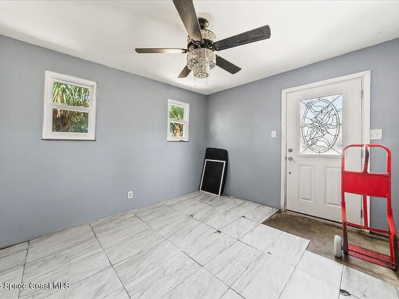 Located in Titusville's Indian River City-Delespine Grant area, this concrete-block home offers a solid investment opportunity close to the Indian River and downtown amenities. The property features 3 bedrooms and 2 baths with 810 sq ft recorded, plus enclosed front and back porches and a converted garage, all ducted for additional heated and cooled space. Recent updates include a 2019 roof and NEW hurricane-rated windows throughout. The HVAC system, also 2019, was damaged during a recent storm and will need repair or replacement, providing clear value-add potential. A fully fenced yard and backyard shed add functionality. Conveniently located near downtown Titusville, this home presents strong potential for renovation, rental, or long-term investment on Florida's Space Coast.
