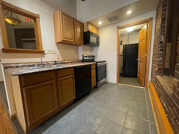Stove, microwave, dishwasher, fridge. Unit on the 2nd floor, no elevator, only stair access. Water included in rent.
