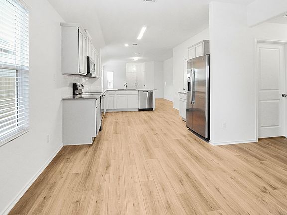 Welcome to this charming 3 bedroom, 2 bathroom home located in the desirable community of Jarrell, TX. This one-story house features a private fenced backyard, perfect for your furry friends to roam freely. Enjoy the convenience of a 2-car garage with a garage door opener, as well as walk-in closets and a walk-in pantry for ample storage space. The home boasts stainless steel appliances, recessed lighting, and hard flooring throughout. Relax in the soaking tub or walk-in shower in the double vanity primary bathroom. Take advantage of community amenities such as a pool, playground, sports court, and splash pad. Entertain guests on the covered back porch or at the breakfast bar. Don't miss out on this fantastic opportunity to make this house your home! Pet Friendly!