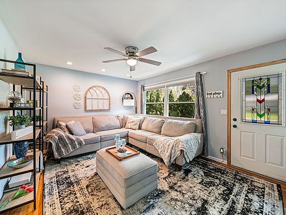 Adorable and move in ready 3 bedroom, 1 bathroom, ranch with full unfinished basement! This house is the perfect starter or downsizing space. Real hardwood flooring throughout. Updated SS appliances and bathroom make this home super functional. Outside you have a fenced in yard, large (sparkle) driveway and 2 car garage. Roof and siding are updated. The secluded back yard is perfect for BBQs on the deck, gazebo for some shade, pets to roam free, and is currently being used as a plant sanctuary! Cute front yard in a quiet neighborhood of Lake in the Hills.