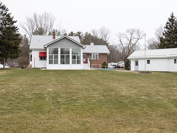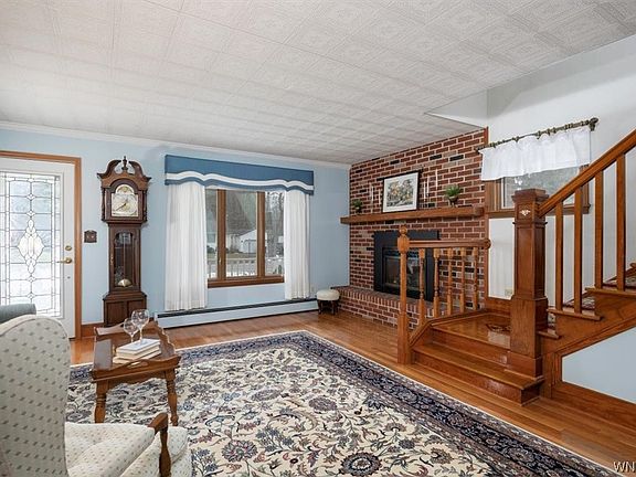 Meticulously maintained home situated on a picturesque lot with many beautiful pine trees. Gleaming hardwood floors throughout the first floor. Living room has gas fireplace with brick surround. Eat-in kitchen with wood cabinetry, built-in desk, tile floor, stainless double sink, stainless stove and refrigerator. Two bedrooms on the first floor and a full bathroom with large shower. The family room is adjacent to the kitchen and has wood walls, a tile floor, cathedral ceiling, and a bay window overlooking the beautiful back yard. Upstairs, there is a third bedroom and an additional multi-purpose room. There is a fantastic enclosed three-season back porch. Appliances are included with sale. The garage was rebuilt in 2015. The steel roof was installed approximately 10 years ago. Other updates include: new back door; windows replaced in the kitchen, living room, and front bedroom.