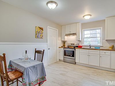 Home is in Old East Durham and features: Freshly painted interior, Complete Kitchen Remodeled from New Cabinets, Butcher Block Counters, Tile Floors and New Appliances. Eat in Kitchen with separate dining room. Fully updated Bath features new subway tile set surround Shower to Ceiling and Vanity. Original refinished hardwood floors. Light filled large living room, spacious master bedroom with dual closets. Updated and ample laundry room with new washer and dryer. Third room can be used as a bedroom (but not suggested for small children) or could be used as a Den/Office or Guest Suite which includes a fireplace, plenty of closet space and storage. New windows and new barn door. Located on a very private and fully fenced .26 square foot lot with flat backyard. Landlord will pay for CPI Home Security unit. Tons of Charm and Character. Friendly, quiet neighbors. Easy access to Downtown Durham, I85, US 70, I40 and Durham Freeway. Only 1 small non-aggressive pet allowed. No Section 8 nor virtual tours. 1 year optional renewable lease