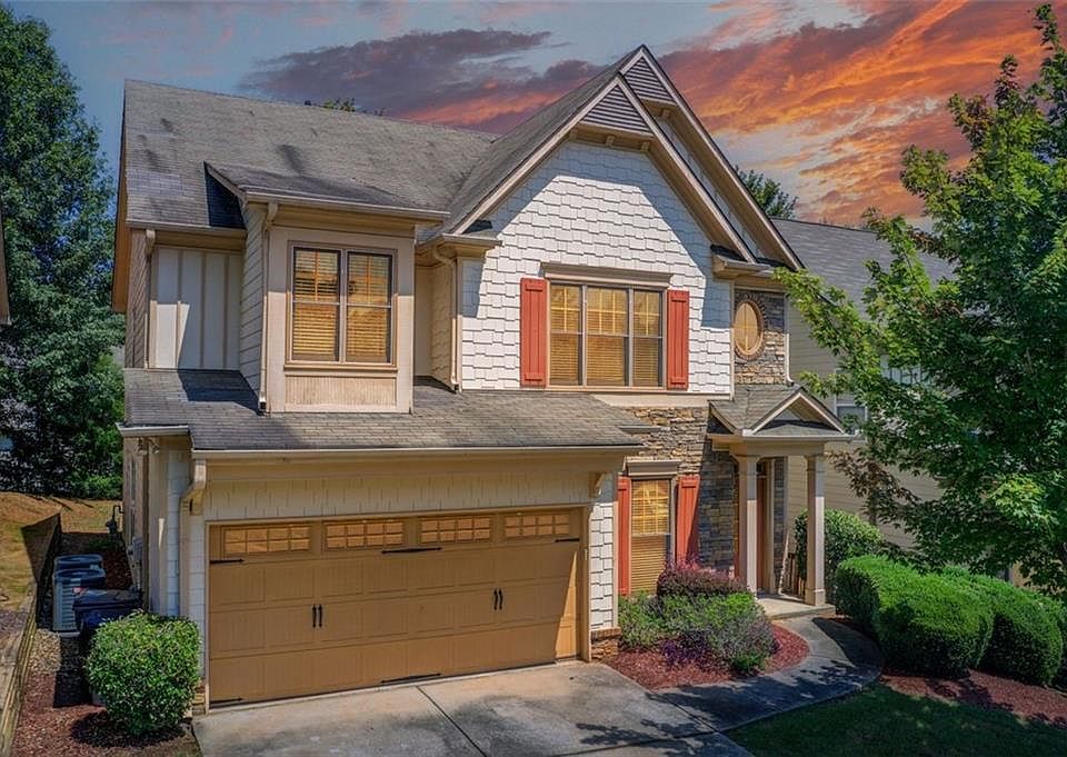 This charming house offers approximately 2,350 square feet of living space and sits on a lot of approximately 4,790 square feet. The home features four bedrooms and two and a half bathrooms, providing ample space and flexibility. The exterior of the property boasts a spacious lot with landscaping, creating a peaceful and picturesque setting. The charming architecture and elegant lighting contribute to the home's curb appeal. Inside, the home showcases a spacious and open layout, with hardwood floors throughout. The living areas are bright and airy, thanks to the abundant natural light and neutral decor. The cozy fireplace adds warmth and ambiance to the living spaces. The kitchen is equipped with ample cabinetry and counter space, providing a functional and efficient cooking environment. The hardwood flooring continues into the kitchen, complementing the overall design. The primary bedroom is a spacious retreat, offering a serene and comfortable atmosphere. The en-suite bathroom features a bright and expansive layout with ample vanity space. Additional bedrooms provide versatile accommodation options, while the additional bathrooms offer convenience and privacy. The outdoor space featuring a spacious yard with greenery, creating a peaceful and picturesque setting. The expansive outdoor community pool is a perfect addition for those seeking a refreshing oasis. The property's architecture is truly picturesque, blending seamlessly with the surrounding environment and creating a harmonious living experience.