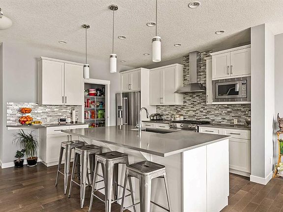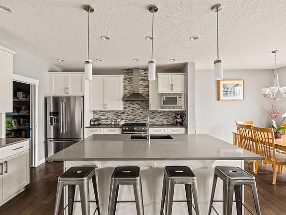 Welcome to this beautifully maintained Echo model by Sterling Homes—an inviting 2-storey residence offering 3 bedrooms, 2.5 baths, and nearly over 2,000 sq. ft. of thoughtfully designed living space. From the moment you step inside, the open-concept main floor sets the tone with its seamless blend of style and functionality. The kitchen showcases timeless white cabinetry, quartz countertops, a walk-in pantry, and recessed lighting that brightens every corner. Gather in the cozy living room anchored by a gas fireplace, or extend your entertaining outdoors with a pressure-treated deck just off the dining area. Upstairs, you’ll find a bright bonus room with vaulted ceilings, perfect for family movie nights or a quiet retreat. The primary suite offers a spa-inspired ensuite with a quartz vanity, tiled shower, and deep soaker tub. Two additional bedrooms, a 5-piece bathroom, and a convenient laundry room complete the upper level. Additional features include a double attached garage, brand-new siding, shingles, and eaves (all updated this year), plus plenty of storage throughout the home Set in the heart of Evanston, this home is only minutes from schools, shopping, parks, and major roadways—offering the perfect balance of community living and urban convenience. Book your showing today!