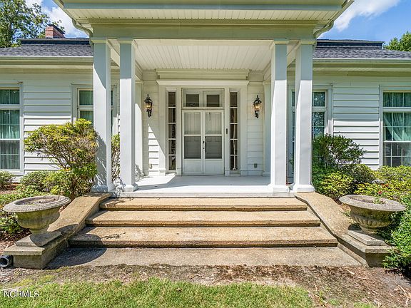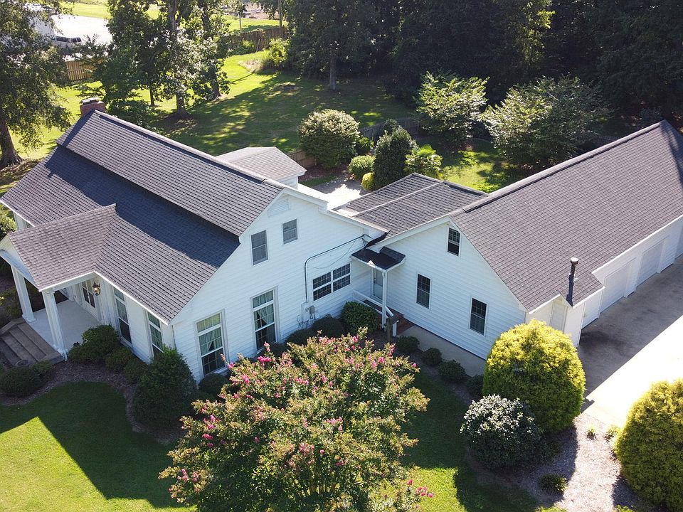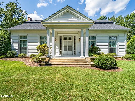 The 3 bay garage offers space for vehicles, boats, or shop equipment. Storage space is everywhere including a floored attic running the length of the garage with a permanent staircase. The primary bedroom on the first floor features large closets .The lot is 3.74 acres including a wooded area providing privacy. Just a block from amenities, the natural landscaping provides a sound buffer.