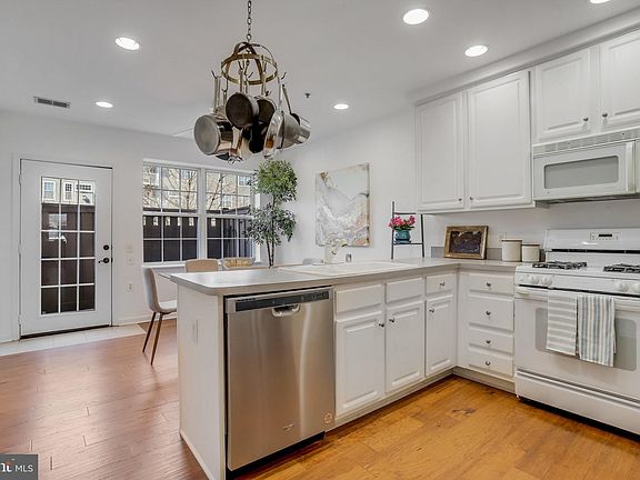 Gorgeous well-maintained 2 bedroom, 2 level townhouse condo with private entry is around the corner from the very heart of Old-Town Alexandria. Turnkey unit featuring hardwood floors, gas fireplace, recessed lighting, open floor plan, large sunny kitchen, enormous primary bath with double sink vanity, & private enclosed back patio. Washer and dryer on bedroom level. Fresh paint throughout. Enjoy all the amenities of Old Town Village that include pool, fitness center, party room, tot lot/playground, designated dog areas, picnic area & bike paths. Assigned parking spot #19 (additional unassigned spot available via application). Close to the Metro, King Street, and Whole Foods. Easy commute into DC & major commuter routes.