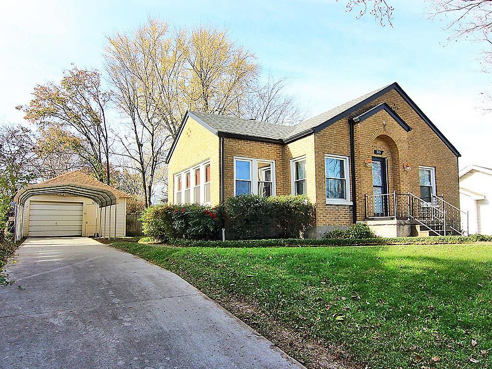 Adorable all-brick bungalow with extra parking, alley access and a gorgeous fenced back yard. This rare find is just what you're looking for. Main level features an inviting sunroom, living room, dining room, additional room for office or dinette and nice-sized kitchen. Two bedrooms and a recently remodeled bath round out the main level. The mostly unfinished walkup basement includes an extra bath with shower. And it offers storage galore. But oh, that back yard! A covered deck with tiki torches opens from the kitchen into your private paradise. Fenced and shaded, you'll love relaxing or entertaining here. Parking includes a detached garage and carport with the NEW Concrete driveway, and another carport on the alley side of the yard. Even the unglamorous extras are taken care of - like a new sewer line from the house to the city main. This house - with so much to offer including a new roof in 2023 - will be hard to beat in this price range. Come see for yourself!