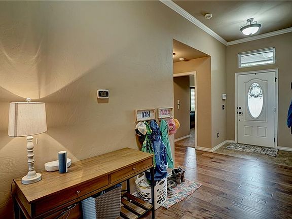 BEAUTIFUL 3 bed 2 bath home that's well taken care of and nestled in an up and coming neighborhood that’s close to all the amenities you could possibly need? Look no further! This home features a LARGE master bedroom, with TWO walk in closets, double vanity, large soaking tub that rests below a large frosted window! ALL west facing windows have PLANTATION SHUTTERS to block out the harsh evening summer sun, the kitchen’s open concept makes the living and dining areas feel like one GIANT room, granite countertops and slide out shelving! Crown moulding, gas log cast stone fireplace, HICKORY HARDWOOD flooring in all the common areas, large TORNADO SHELTER, 3 CAR GARAGE, fresh paint, upgraded advanced smoke alarms that also give the owner real time air quality data! This home also features a MASSIVE backyard and the neighborhood SPLASH PAD PARK is walking distance from the driveway!! This home has been well taken care of and upgraded! Centrally located between Tinker and Norman!!