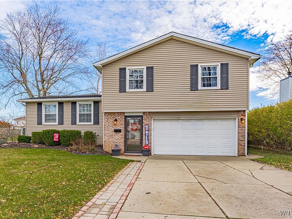 Welcome home to this beautifully maintained 4 bed, 2 full bath, nearly 2200 square feet property located in a highly sought after neighborhood in Williamsville School District. Step inside to find an updated, open-concept kitchen that flows seamlessly into an enormous living room featuring a real wood-burning fireplace and stunning skylights that fill the space with natural light. A formal dining room offers the perfect setting for gatherings, while the large mudroom provides exceptional storage and everyday convenience. The expansive workout room is a rare bonus, ideal for fitness, hobbies, or additional flex space. Both bathrooms have been tastefully updated, and each bedroom offers generous space. Outside, enjoy a fully fenced, park-like backyard complete with a cozy fire pit—an outdoor oasis perfect for relaxing or entertaining. Move-in ready and loaded with character and updates, this home truly has it all!