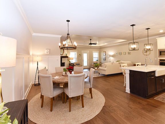 Step into this beautiful Breland Homes 3BR/2BA, 1,855 sq ft townhouse with a 2-car garage in popular Clift Farm, close to shopping, grocery, and dining. Enjoy an open floor plan with hardwood flooring in the main living area, a gas fireplace, wainscoting, and a tray ceiling with shiplap detailing. The kitchen features a large island and a subway tile backsplash. The main bedroom offers a tray ceiling, custom closets, an oversized soaking tub, and a walk-in tile shower with frameless glass. Relax in the screened-in patio and spacious backyard. Per seller: custom closets in all bedrooms, added front yard escape, brick accents by the driveway, and a landscaped flower bed in the backyard.