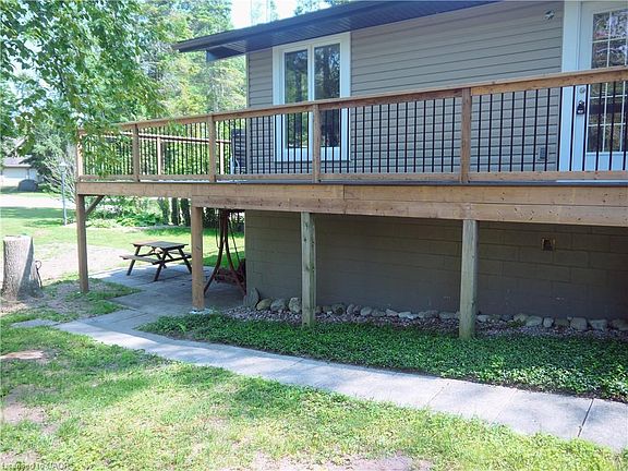 Welcome to 313 Spruce Crescent! This 3 bedroom, 2 bathroom raised BUNGALOW is located on a quiet cul-de-sac just a short a walk from the beach and boat launch at Point Clark. Enjoy summer treats by the historic lighthouse and the kids will love the nearby playground. Updates includes NEW ROOF, brand NEW DECK, all NEW SIDING, and new fascia and eavestrough. HARDWOOD floors throughout the main floor - NO CARPET. Sliding doors open to the 32' by 11' wraparound deck overlooking the beautiful gardens and well-treed lot. Host the family cookout on the LARGE BRICK GRILL adjacent to the patio with outdoor dining set and chair swing. Ample storage in the WORKSHOP off the garage. Large shed for firewood and extra storage. All appliances included: fridge, stove, microwave, washer, and dryer. Don’t miss your chance to make this wonderful raised bungalow your home away from home! Schedule your private showing today. Viewed by appointment only - no open houses.