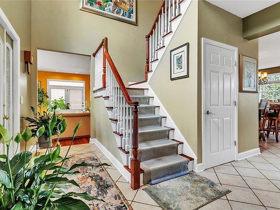 Step into almost 6000 sf of thoughtfully designed living space in this stunning home, where comfort meets luxury. The gourmet kitchen flows seamlessly into a spacious family room with a cozy fireplace and a sunlit breakfast nook. Step outside to a massive deck overlooking a sparkling pool, basketball court, and two elegant pagodas, creating a private outdoor oasis. Downstairs, a finished basement offers endless entertainment with a game room featuring pool table, foosball, and air hockey, plus a dedicated exercise room and a cozy media lounge ideal for movie nights and sports gatherings. Upstairs, the oversized primary suite easily accommodates a king bed and sitting area, complemented by a glass tile shower and soaking tub. 3 additional bedrooms offer flexibility for family, guests, or home office needs. A covered patio beneath the deck invites quiet relaxation, while the 3-car garage provides ample storage and convenience. This home is a rare blend of space, style, and recreation.