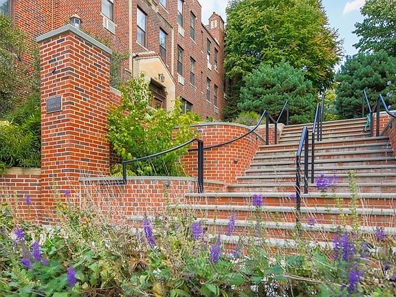Beautifully updated 3BR 2BA w/ parking at The Terraces, one of Washington Squares most popular properties. This sunny top floor unit features a large living/dining area w/ fireplace and period moldings. Adjacent is an oversized foyer perfect for desk and computer. Modern white kitchen w/ granite counters, storage aplenty & direct porch access to a private porch. Baths respect the vintage tile work while incorporating modern touches. Spacious master suite & very good-sized additional bedrooms. High ceilings, lots of windows, custom closets & upgraded light fixtures throughout. Amenities include in-unit laundry hookups, private storage in basement, assigned parking spot & an onsite super make life easy! Set amidst lush, professionally landscaped grounds the Terraces offers a serene oasis just steps to the C&D lines of the T, shops, grocery store, & the fabulous restaurants that make Wash Square a destination-dining favorite. Runkle Elementary, BHS, & Waldenstein Park are walkable too!