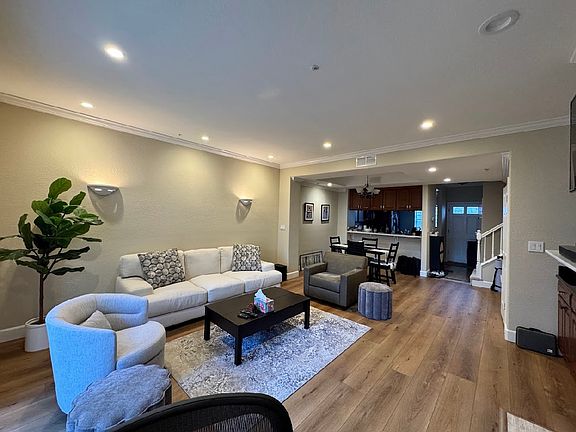 Upstairs, you'll find two spacious en-suite bedrooms, each offering comfort and privacy. The community includes access to a pool, fitness center, and the Bay Trail a gentle walking path that winds through parks, open spaces, and habitats where you can spot exotic birds. With garage parking, guest parking, and a prime location near top-rated schools, shopping, and commuter routes, this home combines everyday comfort with a truly special setting.