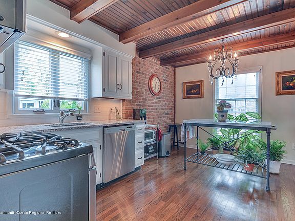 Finally, a house filled with charm and move-in ready! This classic salt box Colonial offers a 2 story great room/dining room with fireplace, lovely updated kitchen with decorative beams, a brick wall, granite counters, new appliances, and beautiful hardwood floors. The essential first floor master bedroom, bath and large closet add to its appeal. There is a convenient first floor half bath and laundry. The second floor features a loft that's the perfect spot for your work area, 2 bedrooms and a new Jack and Jill bath. The private rear yard offers the perfect spot to entertain with its brick patio, in-ground pool, and awning area. The finished basement has a large play room, a storage area plus a new bath with shower.This home has the charm, comfort, and character that epitomizes Sea Girt