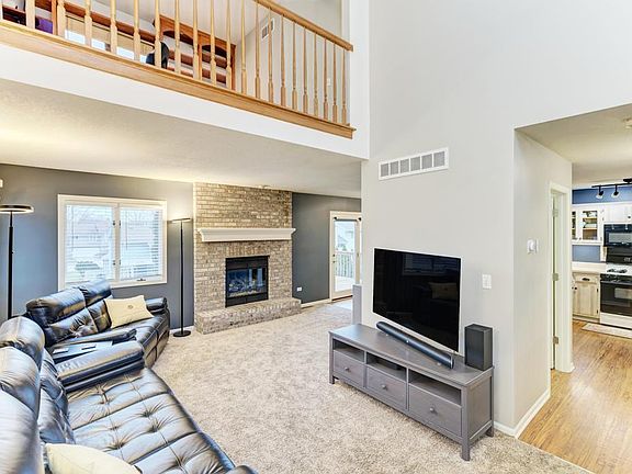 This beautiful 2 bedroom duplex is nestled off a private wooded setting. Enjoy this maintenance free home with an open valutled entryway showing off a beautiful staircase and loft. The loft can be easily converted to a third bedroom, if you choose to do so. Nice sized kitchen with beautiful cabinetry, ample size for table space and breakfast bar. The deck is off the kitchen and perfect for grilling and entertaining. Gorgeous brick fireplace in living room will be perfect for the cold winter nights. Chimney flashing was recently replaced. Carpet has also been recently replaced. Furnace was replaced in 2022 and the water softner in 2019. All appliances, and the washer and dryer stay! This home has a Radon system as well. The finished walk-out basement is great for a recreation area or an extra tv room! The sliding door leads out to a concrete patio. Master bedroom is a great size with a walk-in closet and shared master bathroom. Bring your buyers! This one wont last long as theres nothing to do but move in!
