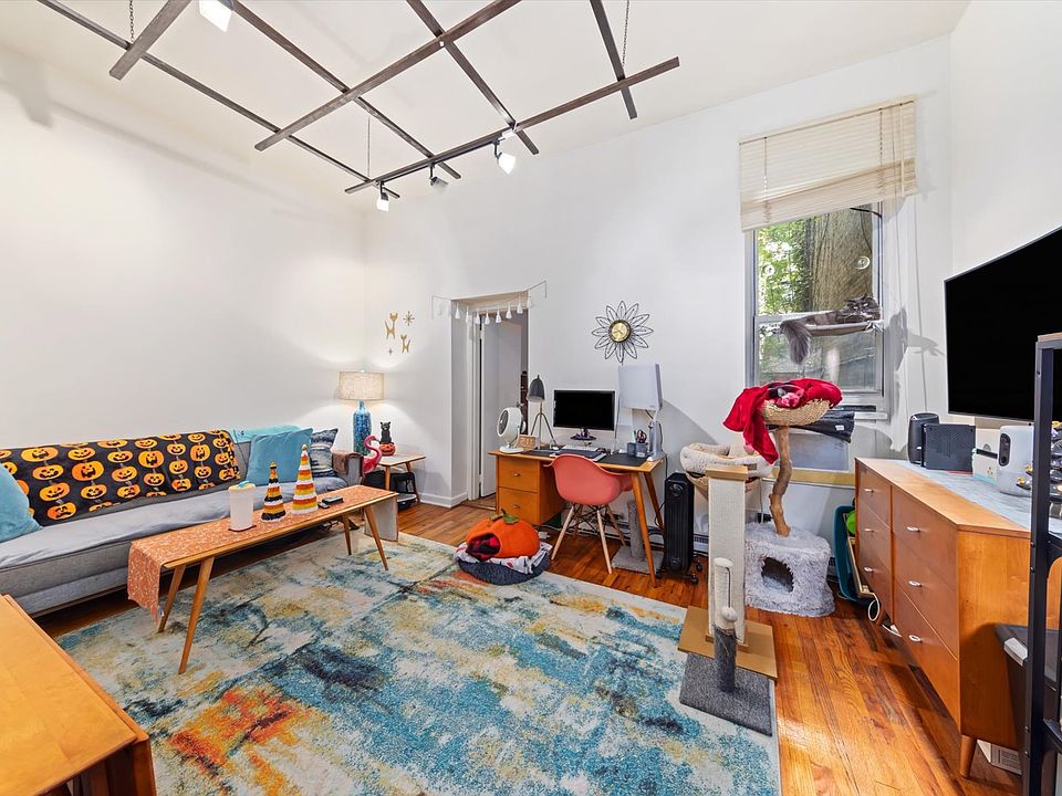 A rare find! Spacious 1-Bedroom with High Ceilings and Built-in Storage Prime Location! Welcome to this expansive one-bedroom home featuring soaring ceilings and ample built-in storage throughout. The generously sized bedroom overlooks a serene, quiet backyard and comfortably accommodates a king-size bed. Situated just four blocks from Central Park and Columbus Circle, this residence offers unbeatable access to multiple subway lines, making it a commuter's dream. Enjoy a seamless application process with no board approval required. Don't miss out on this exceptional opportunity in a coveted neighborhood!