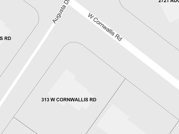 Corner lot of Augusta Dr and W. Cornwallis Rd. Existing driveway is on Augusta Dr. Great location in a walkable neighborhood. Come take a look and bring your own builder!