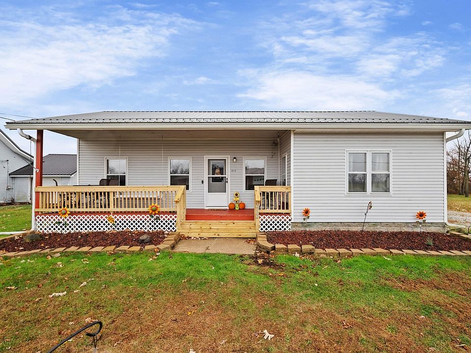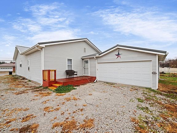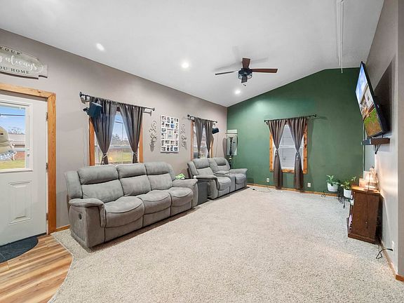 Discover spacious country living just outside of town in this beautifully updated 4-bedroom, 2-bath home set on over half an acre. This property offers a perfect blend of comfort, modern updates, and room to spread out. Step inside to an inviting floor plan featuring vaulted ceilings that enhance the open feel of the expansive living areas. The large eat-in kitchen is a standout, offering abundant cabinet and counter space, updated flooring and light fixtures, and plenty of room for dining. The generous primary suite includes a spacious master bath with a soaking tub and shower with double shower heads—your own personal retreat. Additional updates throughout the home include newer flooring, lighting, furnace, and central air. The metal roof and gutters add peace of mind with long-lasting durability. Outside, enjoy a large yard with ample space for outdoor activities, gardening, or simply relaxing. The property also features a two-car attached garage and two storage sheds, providing all the extra space you need. Move-in ready and packed with updates, this home offers country charm with modern convenience—don’t miss it!