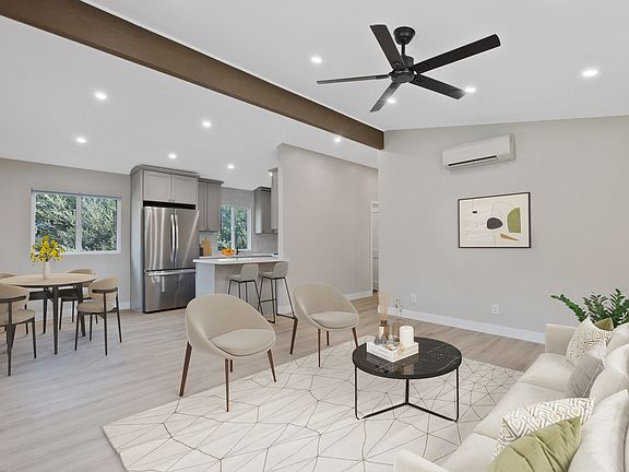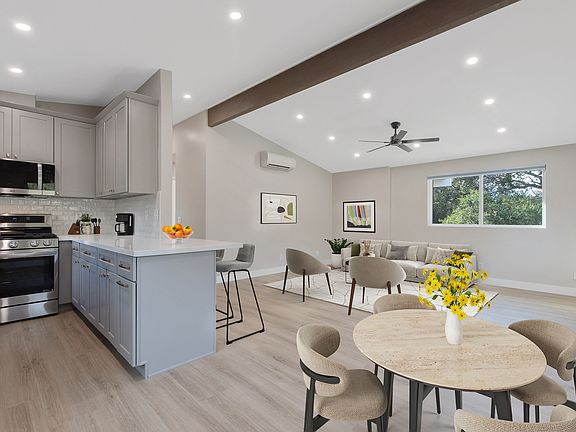 Discover Your Oasis in Ojai Stunningly completely remodeled 3-bedroom, 2-bathroom home offers the perfect blend of modern comfort and serene living. Nestled in the heart of Ojai, you'll enjoy the tranquility of a private paver patio with hardscaped lighting and landscape for privacy. Step inside to discover vaulted ceilings, an open floor plan, and a gourmet kitchen featuring new cabinets, quartz countertops, stainless steel appliances including refrigerator and breakfast bar. Relax in the spacious living room, bathed in natural light from dual-paned windows. The home's thoughtful design includes a convenient indoor laundry room with washer and dryer, as well as two beautifully appointed bathrooms. The primary bathroom boasts a luxurious tiled shower stall and a double vanity. Enjoy year-round comfort with new minisplit heating and air conditioning system, ceiling fans, and appreciate the energy-efficient LED lighting throughout. The home also offers private parking for your convenience. Experience the charm and tranquility of Ojai living in this exceptional property.