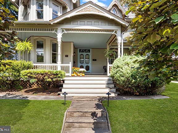 This beautifully updated Victorian blends timeless period details with today’s modern conveniences. A welcoming front porch invites you to relax with your favorite beverage as neighbors pass by - an ideal spot for holiday parade viewing. Inside, the graceful entry foyer showcases exquisite millwork and architectural character. A thoughtfully appointed living room is highlighted by a period fireplace surround, and classic bay window alcove. The spacious dining room, perfect for gatherings and celebrations, adjoins the thoughtfully updated kitchen. Custom William Draper cabinetry, artisan backsplash with medallion detail, leathered granite countertops, a porcelain farm sink, and stainless-steel appliances are featured in the gourmet kitchen with peninsula seating opening into the bright family room addition. Triple glass doors frame panoramic views of the expansive rear property and lush gardens, creating a serene retreat. Enjoy morning coffee or host al fresco gatherings on the stone patio, thoughtfully designed to harmonize with the landscape. A classic center hall staircase, or convenient rear stair, leads to the spacious second floor, where the owner’s suite offers a classically appointed en-suite bath with oversized tub/shower, pedestal sink and generous linen closet. Two additional nice size bedrooms and modern hall bath complete this level. On the private third floor, a pointed-arch stained-glass window graces the front gable. Two additional bedrooms, one recently used as a home office, plus a large storage room make this space both charming and functional. Modern convenience meets classic style on the main level with a mudroom and laundry, perfect for seasonal and sports gear. From here, access the detached garage, which provides even more storage, in addition to the home’s lower level. Move right in to this meticulously maintained home and enjoy all the amenities of in-town living. Stroll to the acclaimed restaurants, charming boutiques, the community library, playgrounds, and local theater offering a tremendous array of programing. Enjoy holiday parades and hometown festivals in a vibrant small-town setting, while being minutes to commuter rail and major highways to Philadelphia, Princeton and New York.