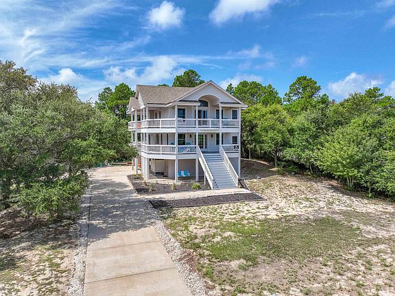 WOW this beautiful home! Looking for a large turn-key 5-bedroom 41/2-bath house on Wax Myrtle Trail that is walking distance to beach? AND HUGE inviting porches with hot tub area for all your friends and family? Walking up the grand stairs you enter into the home to find an open den/game-room already equipped with a pool table along with NBA JAM and MORTAL KOMBAT gaming system with two large flat screen televisions. There are four bedrooms down the hall on this level with one being a primary bedroom with ensuite. This is a flip floor plan so as you go upstairs to the top floor you find an open kitchen, living and dining area. The kitchen opens up over the dining and living area to everyone entertained add that it has a fireplace for your enjoyment. There is a large bedroom, bath and nicely finished closet on this level. There is a laundry room and half bath are on this level. The large undercover porches for lounging and outside dining and entertainment area on each level of the home flowing you right into a Tiki bar with a large back yard. Carport with dry entry into the workshop and car garage plenty of driveway parking. There is a full bath on the downstairs level. The outside shower is easy access coming in from the beach. Minutes away from Southern Shores Civic Association which for approximately 65.00/year offers parking, and one of the best beaches in world! It is also a short distance to a children's park, dog park and walking trails, waterfront dining, shopping, grocery stores and all that Outer Banks has to offer. Move in and start living the OBX island lifestyle!