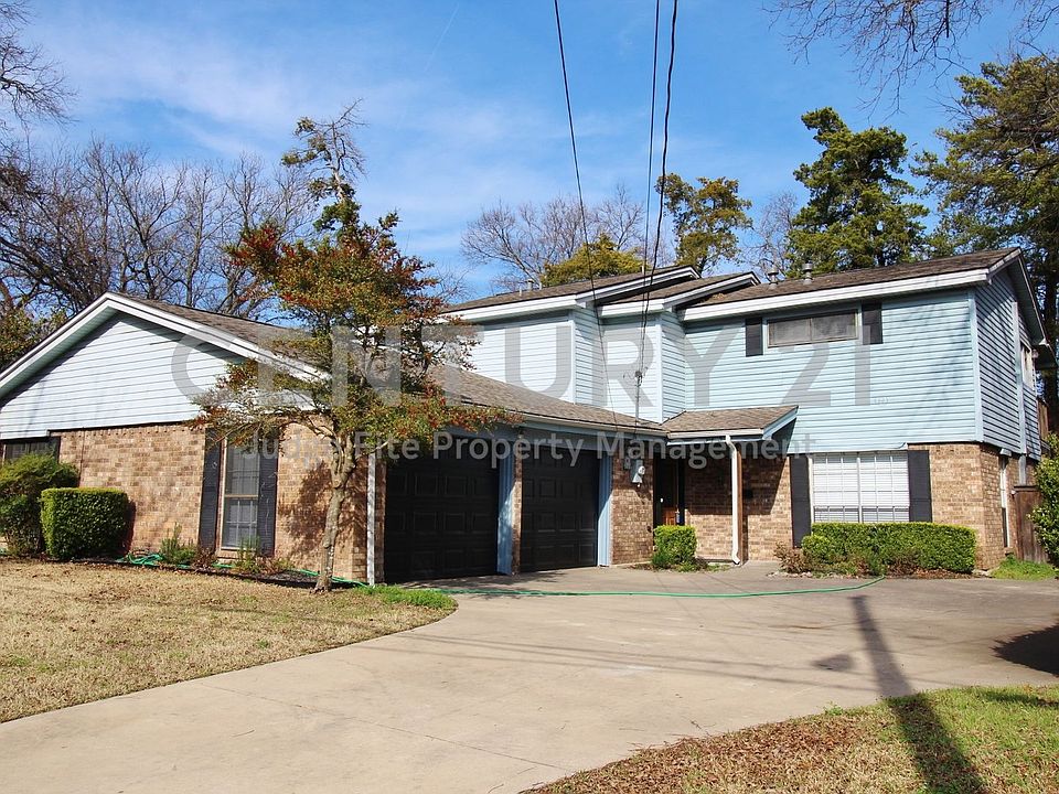 Welcome to this charming multi-level 4/2.5/2 home, offering a blend of spacious interiors and serene outdoor living. The two-story floor plan provides a sense of openness, with a unique layout perfect for both daily life and entertaining. A welcoming living area featuring a striking floor-to-ceiling brick fireplace, the perfect focal point for cozy evenings. Large windows flood the space with natural light, creating a bright and airy atmosphere. The durable LVP flooring extends seamlessly into the kitchen, which is designed for both functionality and style. It boasts ample cabinet space, a built-in microwave, dishwasher, and an electric stove. The U-shaped layout includes a large breakfast bar, providing extra counter space for meal prep or casual dining. The home offers a split bedroom design with four well-sized bedrooms, all with ceiling fans. The split primary bedroom features a private entrance to the back deck, with warm LVP flooring and a large window providing views of the backyard. The en-suite bath includes a spacious walk-in shower and a separate jetted tub, offering a true spa-like retreat. Step outside to discover the home's impressive exterior features. The backyard is a natural oasis, with a large, elevated deck perfect for grilling or relaxing while taking in the creek and wooded views. Stairs leads down to the expansive, fenced-in backyard, providing plenty of space for outdoor activities and gardening. This home combines comfort, style, and a great location, making it an excellent retreat. It's an ideal choice for anyone looking for a home that feels like a private sanctuary. Owner must approve all pets.