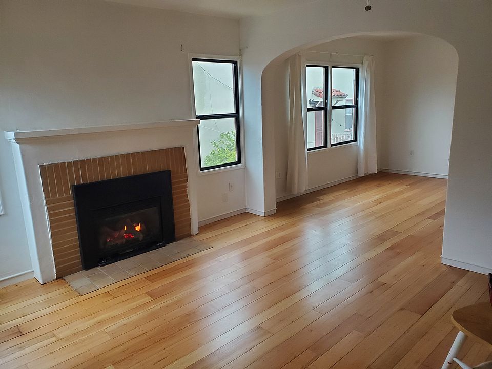 This is a large two bedroom apartment with a plus room off the living room. The kitchen has the gorgeous original 1940 tile, and room for a dining table. Hardwood floors throughout, except the kitchen, which has new Marmoleum. All the original charm is preserved, but there's new wiring and plumbing and all new appliances. There's an extra room off the living room that can be used as a dining room or office.