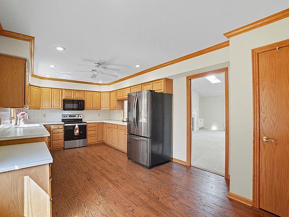 Welcome to this well-maintained, charming ranch home in the quiet and desirable Hayden Falls community of Dublin (Columbus taxes!). Step into a bright, welcoming foyer that leads to a spacious kitchen featuring abundant cabinetry, ceiling fan, and an eating area filled with natural light from large window. The large, open-concept great room boasts vaulted ceilings, skylights, a cozy gas log fireplace, and convenient built-in shelving, perfect for relaxing or entertaining.