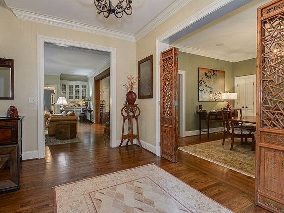 One of a kind and beautifully built custom home by Garren. Open floor plan, high ceilings, exquisite details, gourmet kitchen with island, 6 burner gas Thermador cooktop, double ovens (convection), farm sink, detailed tile and hardwood flooring. Fireplace in great room with wet bar/wine cooler. Owner's suite features 2 walk-in closets with built-ins, garden tub, double sinks. separate shower and library/study area. 4 bedrooms, 3 baths up plus rec room (recently added hardwood flooring). Covered side porch, double garage and 2 parking pads. Fenced back yard, private courtyard, plenty of room to add a pool. Spectacular home!