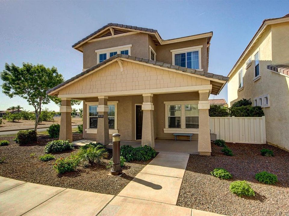 Fantastic 3 bedroom plus den home in the popular Agritopa on a large corner lot!! This beautiful home features gorgeous hard wood floors & complimenting tile throughout, open floor plan great for entertaining, kitchen offers granite counters & stainless steel appliances with lots of counter space & breakfast bar as well as door leading out to the tranquil patio with built-in BBQ. Enjoy the master suite upstairs with dual vanity & large walk-in closet split from the additional 2 bedrooms and den or office. This wonderful home is move in ready with great access to the 202 Santan freeway as well as the Santan Mall for shopping & dining as well as enjoy the great Agritopa community features including pool & tennis courts.