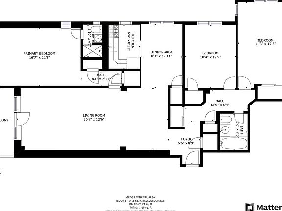 - Total interior livable area: 1,418 sqft