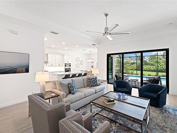 Amazing home in Fiddler's Creek at Marsh Cove double gated community. This is home away from home. Beautiful white quartz counter tops and grey wood tile throughout. Class and elegance with the warmth of a coastal beach home feel. Large Primary Suite with huge walk in shower and garden tub and generous primary closet. 3 Queen Guest bedrooms all well appointed furnishings. Total 3 full bathrooms. From the moment you pass through the grand entry hall you will feel serene in lovely art and comfortable clean decor. The open home office has desk and two comfortable seats for working remotely/printer too. Better yet you have a living space outside with large rectangle pool and spa. Come lounge and relax with the seating and even tv with built in kitchen outdoors. 4 seat table for dining outdoors not pictured here. Large dining table with same view and generous kitchen island with more dining options, separate coffee counter and large walk in pantry too. Enjoy the Fiddler's Creek social club membership transfer for $750 one time fee for duration of stay to enjoy club privileges. Come make this your fresh home away from home any time. Enjoy historic Naples beaches, dining, and shopping close to Downtown Naples 5th and 3rd and Marco Island.
