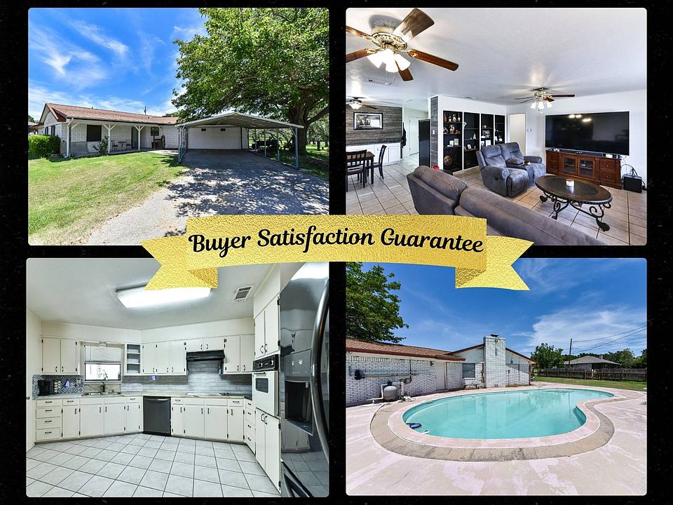 Own Your Dream Home with Zero Money Down! Unlock the door to your future with an exclusive offer: Purchase this home and receive $3,200 back in closing costs credits OR $1,817 per month at an exceptional financing rate of 5.50% APR with ZERO down payment available for those who qualify*. Nestled on a generous 2.08-acre lot, this charming one-story residence offers a serene retreat with the perfect blend of comfort and function. From the moment you arrive, you'll be captivated by the expansive front yard adorned with mature trees that provide both shade and a picturesque welcome. The classic exterior is complemented by a 2-car attached garage and a striking stone, rock, and brick fireplace that adds timeless character. Step inside to discover approximately 1,690 square feet of thoughtfully designed living space. The open layout features 3 spacious bedrooms and 2 well-appointed bathrooms, providing ample room for everyday living and relaxation. The kitchen is equipped with a built-in oven and microwave, a walk-in pantry, and a central distribution plumbing system-offering both convenience and efficiency. The primary suite includes a walk-in closet, ensuring plenty of storage and comfort. Out back, enjoy your own private oasis. A chain-link fence encloses the beautifully maintained yard, perfect for pets or play, while the in-ground pool invites you to unwind or entertain in style. Open House Everyday. Call us today for open house times! Exclusive Benefits Just for You...If this home isn't quite what you're looking for, we have access to unlisted, off-market properties, distress sales, new construction, and FSBO homes that you won't find online. Don't get stuck owning two homes-Buy This Home, I'll Buy Yours!* Ready to discuss this incredible opportunity? Call the listing agent or visit our website for a free report on how this exclusive offer works. *Monthly payment $1,454, 5.50% APR. 20% Down 30 years to those who qualify. Taxes and insurance not included. Rates as of September 2025. 0% Down financing available to those who qualify. $3,200 closing costs credit or exclusive financing rate is subject to buyer using sellers preferred lender. Don't miss out on your dream home-contact us today!