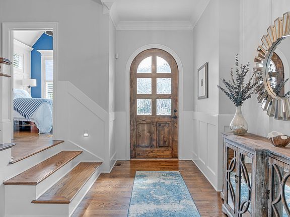 Experience luxury living with this custom-built Grayline home, showcasing top-of-the-line finishes and designer selections. The gourmet kitchen features a large island, quartz countertops, gas cooktop, and walk-in pantry. Mudroom with built-in bench and custom cabinets. Beautiful site-finished hardwoods and trim details throughout the main level and elegant entry. Upstairs, a spacious game room or fifth bedroom, and each bedroom features an en-suite bathroom and walk-in closet. The primary bedroom boasts a large walk-in closet and luxurious bathroom with separate shower and tub. The third level offers a gym, bonus room, and half bath. Additional features include plantation shutters, remote-controlled shades, Nest thermostats, Blink floodlight cameras, and a whole-house RO water filtration system. The private backyard is surrounded by mature trees and backs up to a serene woods and farm setting, providing complete privacy. Screen porch with gas fireplace and custom swing. The outdoor entertainment space features a travertine patio, outdoor sound system, saltwater concrete pool, and five water features. The pool house includes a shaded bar, sunken outdoor kitchen,half bath and outdoor shower. Electric vehicle charging station in the 2-car garage. Other features include a sprinkler system, landscape lights, and a large 3-car garage with epoxy flooring. Welcome home!