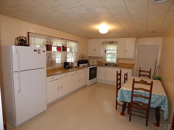 Pleasant cottage on large (.33acre) CORNER lot just off Blue Angel. This charmer is two miles from the entrance to Saufley Field, and eight miles from the back of NAS. The kitchen is bright and roomy! There is new carpet in living room, and hardwood floors in the bedrooms. New paint. Central Heat and Air. Right now the owner has WiFi for computer, phone, and ADT security. It also has cable for TV if needed. The newer Frigidaire refrigerator and washer/dryer convey with the house with full price. There is a newer Rheem hot water heater. The carport and porch have fresh wood and a brand new roof. The house is on city water, but if you need more water for irrigation, etc, there is a well on the property. Good news, too, this lot is in Flood Zone X. It stayed high and dry during the Pensacola flood of a few years ago! Plenty of room for dogs or swingsets or extra work vehicles or storage buildings. House is sold As Is and is priced to sell! Don't miss it!