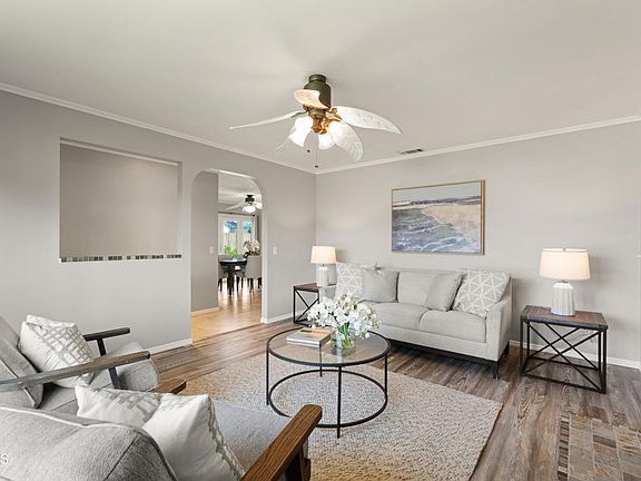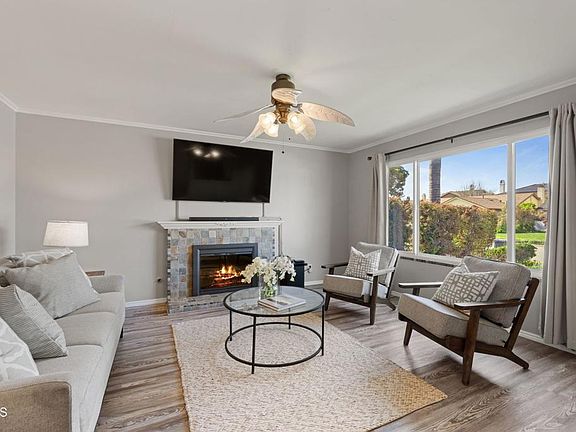 Welcome to this charming seaside retreat nestled in Sea View Park. This delightful residence boasts a picturesque front yard adorned with lush greenery, complemented by a spacious driveway leading to a welcoming entrance.Upon entering, you will notice the arched entry way to the living area, porcelain tile floors and crown molding throughout. The cozy living room features a classic fireplace, perfect for relaxing evenings by the hearth. Adjacent to the living area, you'll find a tasteful dining space accented by a stylish ceiling fan, ideal for intimate gatherings or casual meals with loved ones.The open kitchen, adorned with sleek grey cabinetry, tiles counter tops, and stainless steal appliances, offers both functionality and modern elegance. Whether preparing a gourmet meal or enjoying a quick breakfast, this kitchen is sure to inspire culinary creativity.With four generously-sized bedrooms and two full baths, there is ample space for family and guests to unwind and rejuvenate.Step outside onto the expansive deck and into the breathtaking backyard oasis, where you can bask in the beauty of nature or entertain guests amidst the serene surroundings.Completing this perfect coastal haven is a convenient two-car garage, providing storage space for vehicles and outdoor gear. Within minutes from the Seabridge shopping center, Oxnard Shores, schools, parks, and much more, you will experience the epitome of coastal living in this enchanting home at Sea View Park.