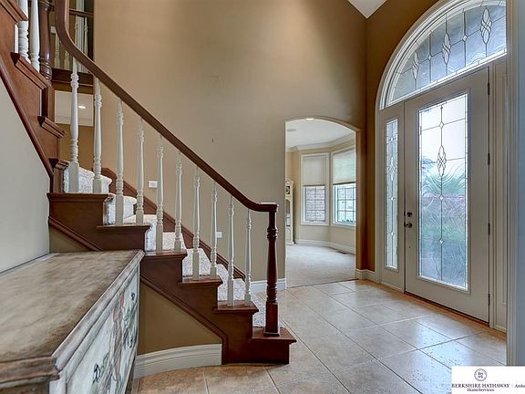Lovely 1 ½ Story home in Trailridge Ranches! Over an acre of land backing to trees with a pool. This subdivision is sought after due to its spacious yards, many which are over an acre, peace and quiet, large trees and country like feel. Elkhorn schools, Elkhorn South High School. This home offers an open floor plan, soaring ceilings in the Great Room, main floor Master Bedroom as well as a 2 story entry, office space and dining room/flex room. 3 additional bedrooms and 2 baths on the second floor. The Master Bath offers double sinks, large tub and 2 closets. Very cool area off the second bedroom walk in closet that could be used for a child's playroom or simply for storage. The lower level offers a huge rec room area as well as a walk behind bar for entertaining, very spacious storage area and the ¾ bath is just off the back door which is prefect for family and guests at the pool! 2 A/C units and 2 furnace units for your comfort. Active for back up offers only.