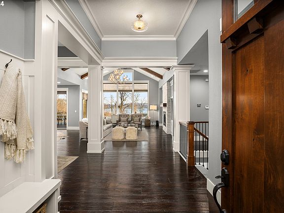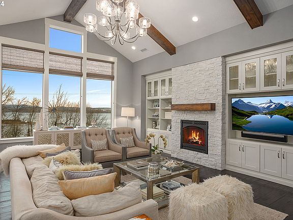 Prepare to fall in LOVE with this CHIC; CLEAN Line WATERFRONT Masterpiece. This home has recently been appraised at $1,700,000 and is by far the best value and square footage for the money. Enjoy SWEEPING PANORAMIC river views that will take your breath away! Enjoy LUXURY LIVING with the PRIMARY bedroom on the MAIN floor. DESIGN and STYLE come together that make this one of the areas most IN-DEMAND properties. An ENTERTAINER or FAMILY dream home minutes away from top rated Camas Schools. Beautiful covered outdoor space, oversized 3 car garage, ultra high ceilings, luxurious bathrooms, gym and media room and more. Truly a home for anyone to be proud of. Enjoy life and welcome to your very own slice of perfection. 2 bedrooms plus guest suite on lower level. Family room with wet bar/wine cooler. Secret bookcase opens to theater room.