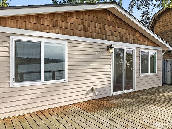 Charming, Sophisticated, Elegant, Home on Desirable Steamboat Island with 50 Feet of Western Exposure Waterfront!! This one level home has views galore from the living room, kitchen & primary bedroom. Extra large deck spans the entire back of home with additional lower levels to take in more views. In 2016 this property was completely remodeled by licensed contractors with new roof, windows, siding, windows, electrical, plumbing, mini-split, and finished out interior with quartz counters, SS appliances, & heated tile floor in bathroom. The island has a private boat launch for residents. Sunsets from your deck will warm your heart and broaden your appreciation for nature and life. Waterfront homes like this don't come on the market often!