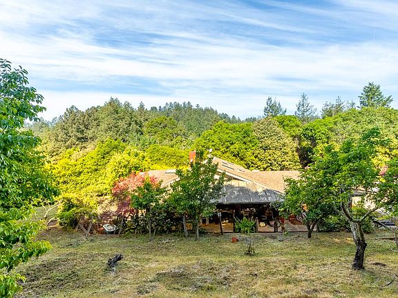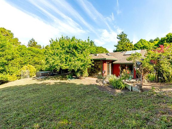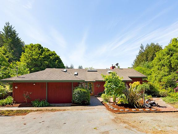 This is the acreage you have been hoping for! Close in to Aptos Village, an ultra-private, 10 acre parcel off of Trout Gulch Road set in sparkling sunshine. The property sits high above the gulch with towering mature redwood groves and oak meadows. Upgraded, this 2073 square foot, single level ranch style home is reminiscent of Frank Lloyd Wright style. Built in 1986 as a passive solar home and oriented to receive natural light throughout with plenty of windows, wood and skylights. The home looks out over a sunny meadow which is perfect for a pool or horses. Front yard has a lovely babbling pond with chorus frogs and blooming lotus year round. Landscaping includes mature fruit trees, rose bushes, and lilacs. A home office contains a loft and is plumbed for gas & water making this property extremely versatile. The grounds also include an adventurous tree house for the kids & a large secure dog run / shelter. Only 6 minutes from downtown Aptos.