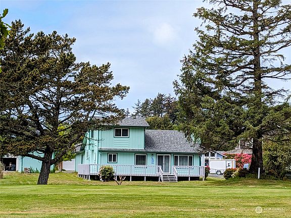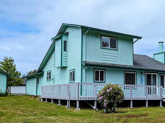 Live along the beautiful Surfside Estates Golf Course with view of ACRES OF LUSH GREEN LAWN YOU DONT HAVE TO MOW! 3BR/2BA located on the 2nd green with a lovely view AND a dream kitchen. Sliding glass doors lead out to the deck and the golf course. Main: great room w/fireplace, eat-in kitchen, 2BR/1BA. Upper level: primary BR with ensuite BA and a tranquil bird's nest view of the treetops. Carport + one car garage + shop/golf cart garage. Sale includes adjacent lot to the south. 130' of frontage along the second fairway. Detached Garage: 192 sf. Attached Garage: 288 sf. Cov. carport: 336 sf