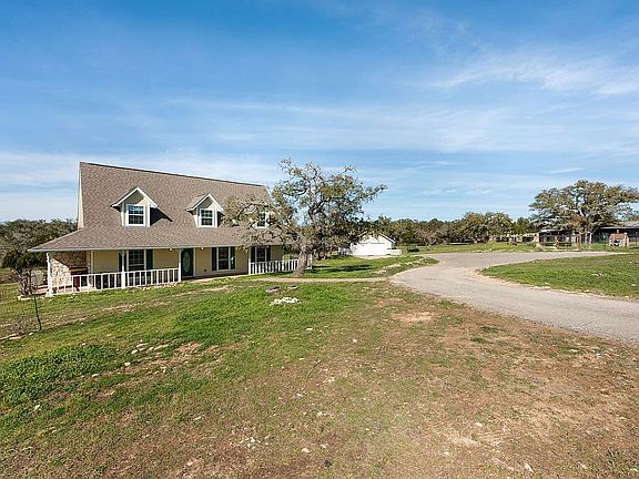 Classic Hill Country Home with tons of outdoor living space!Great for entertaining with an open floor plan,vaulted ceilings & lots of natural light.Wrap porch in front and very large deck in back.Plenty of space for a swimming pool.This home features new windows,cabinets & granite counters in kitchen.Fresh paint and new flooring throughout.There's even a nifty pass from the master bedroom closet to the laundry room.Abundant wildlife.Tons of storage. Rainwater collection system.