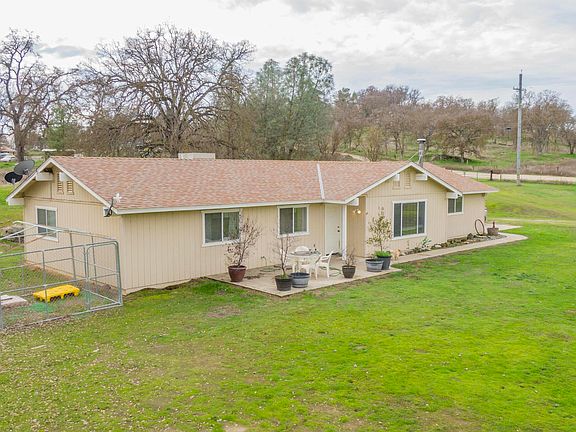 Enjoy the gentle terrain, mature oak trees, unique rock outcroppings and breathtaking views of the Sierras from this premium piece of land. Both homes have attached garages, custom tile, ceiling fans throughout, and share a great well. The larger house is 4 bedrooms/2.5 bathrooms and was built in 2006. It has lots of custom flat work around the house; perfect for outdoor entertaining & enjoyment, along with expansive retaining walls, covered entry, vaulted ceilings, bay windows, mud room, generous master, large soaker tub, tall storage shed, chicken coop, and more.