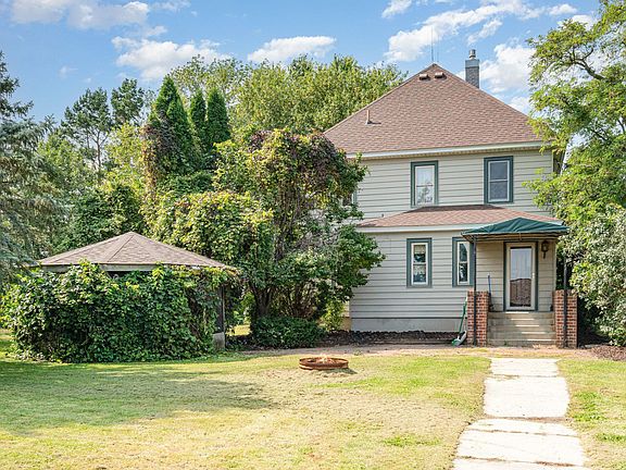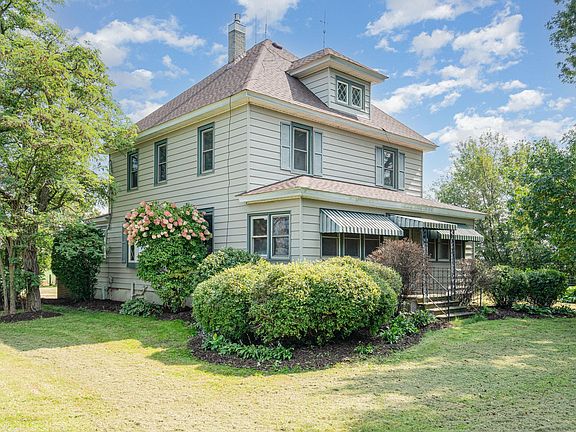 Classic two-story farmhouse on 3.25 Acres! Large country kitchen, main floor laundry & handy back entry. Vintage living & dining rooms with built-ins, wood ceiling & pillars. Tall baseboards, nice trim & doors. Enclosed front porch. Full bath and newer ¾ bath w/ tile floor. Upper level features all 4 bedrooms, cedar hall closet and walk-up attic. Lower level is a great spot for a home office/flex space & storage. Vinyl windows & siding. Newer HVAC & water heater. Most outlets have been updated. This operating sheep farm has a 160 x 40 Barn with concrete floor and a portion is heated. Barn re-shingled a few years ago. There’s a garage, chicken coup, granary & cute Gazebo. Approximately 1.5+/- acres in pasture. High speed fiber optic in house & barn. Must see!