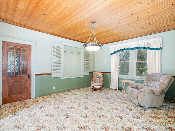 Wood ceilingEnclosed front porchChicken coupVinyl windowsCedar hall closet