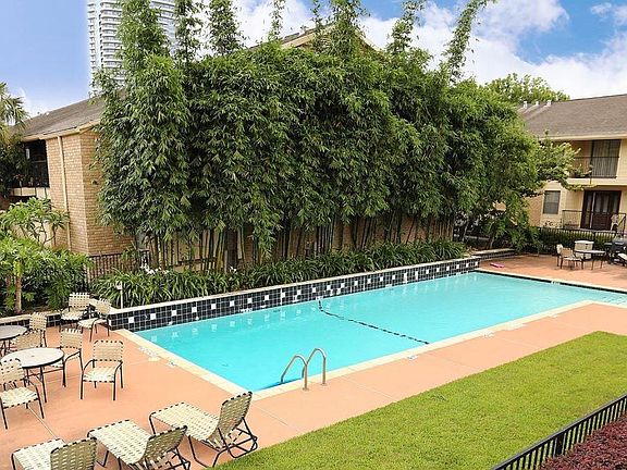 Beautiful condominium located in River Oaks/Upper Kirby area. Technically, this condo is 1 bedroom with addition of a second bedroom/office. Walking distance to Highland Village, River Oaks District, Costco, Lifetime Fitness, LA Fitness, and Central Market. This inner loop condominium community is well-maintained. First-rate building maintenance, repairs, landscaping, and pool area. This community provides a water filtration system (filter/softener). One assigned parking space directly below your condo. Solid concrete garage. No carports here. Gated. HOA FEE COVERS ALL BILLS. Water, sewer, electricity, Xfinity cable, grounds, building, roof, foundation, pool, insurance. Granite countertops in kitchen, stainless steel appliances. LED Lighting. LED fans. All furniture included with sale.